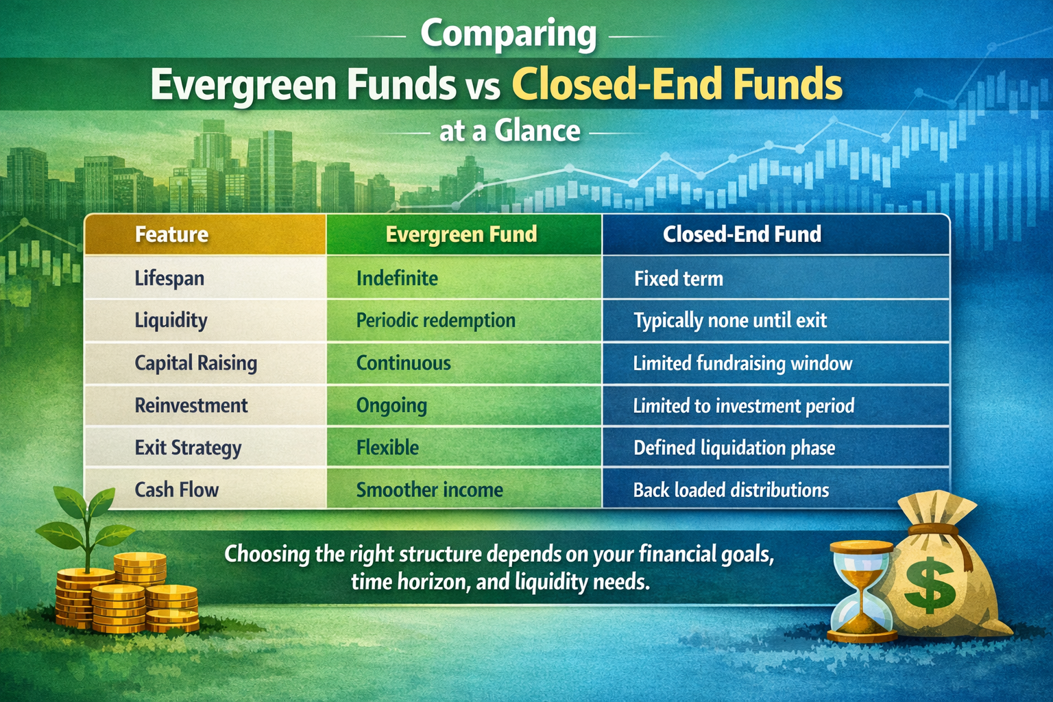 Evergreen Funds vs. Closed-End Funds: Liquidity, Reinvestment, Timing and How to Choose the Right Structure